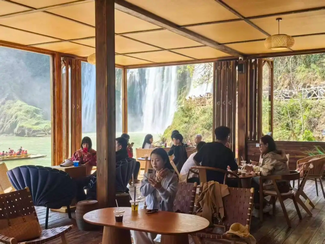 在神龍瀑旁的瀑布咖啡點(diǎn)位,游客暢享咖啡飲品,臨窗而坐,直面飛流直下的瀑布景觀,聽瀑聲、品醇香、拍美景,成為新春打卡爆款。景區(qū)推出的“門票+咖啡”套餐備受青睞,不少家庭游客、年輕群體在此停留休憩,感受山水間的松弛感?!耙郧耙瞾磉^九龍瀑布,咖啡好像是新開的,以前沒有,年輕人比較喜歡喝咖啡,坐在九龍瀑布一邊喝咖啡,一邊欣賞美景,覺得很愜意,是一種新的體驗(yàn)!”來自昆明的周周開心地介紹。