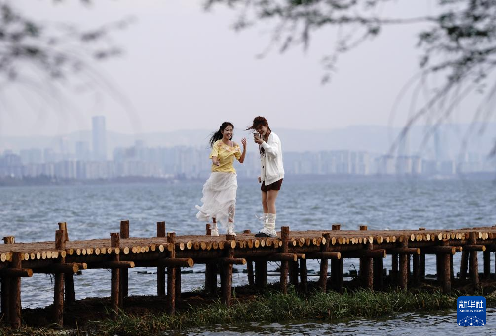 春日暖陽下,昆明滇池碧波蕩漾,遠(yuǎn)山如黛,紅嘴鷗翩躚起舞。游人沿岸漫步、駐足拍攝,共繪出一幅生動(dòng)宜人的春游畫卷。(新華社記者 陳欣波 攝)
