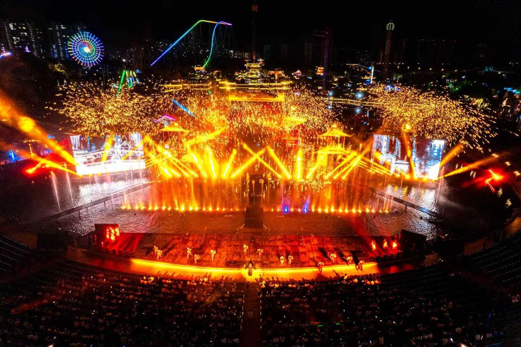 沿長(zhǎng)江溯流而上,大型國(guó)風(fēng)實(shí)景演出《夢(mèng)回洪州》在江西南昌震撼上演。熾熱的鐵水一次次被擊向夜空,鐵花飛濺如漫天流星,與絢爛的沉浸式實(shí)景舞臺(tái)交相輝映,繪就“火樹銀花不夜天”的美景。