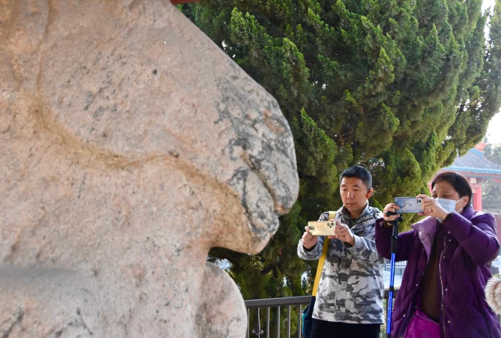 這是茂陵博物館連續(xù)第三年舉辦“博物館里過大年”活動(dòng),今年的“天馬呈祥·漢韻迎新”活動(dòng)以漢文化、“馬”文物為主線。來自山東威海的曾天雄一家,在洛陽(yáng)、西安等地“打卡”了不少與馬相關(guān)的展陳?!跋胱尯⒆觽?cè)谛凶咧杏|摸歷史。他們邊走邊拍,記錄了不少與馬有關(guān)的展品和知識(shí)。”曾天雄說。