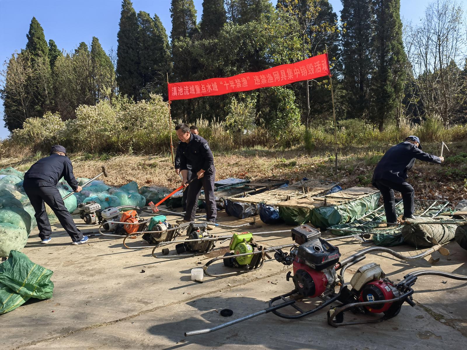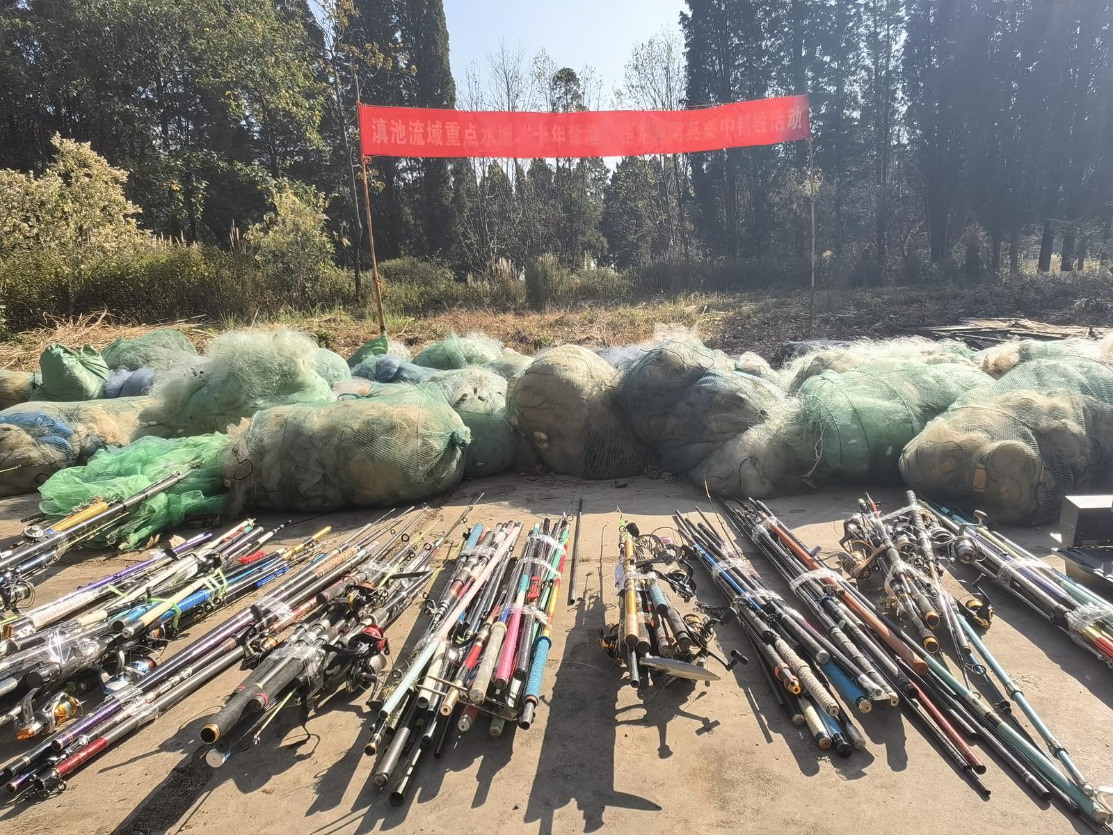 2月27日,昆明市滇池管理局組織開展滇池流域重點水域“十年禁漁”違禁漁網(wǎng)具集中銷毀活動,集中處置近期依法收繳的各類違禁漁具。