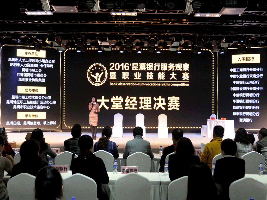 11月26日,將舉辦“2016’昆滇銀行服務(wù)觀察暨職業(yè)技能大賽”頒獎(jiǎng)典禮。