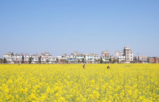 油菜花+綠皮火車+藍(lán)天白云,春天限量版配色來(lái)了