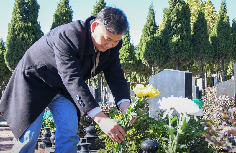 公墓安排工作人員代為擦拭墓碑、敬獻花果、鞠躬行禮,哀悼先人,并及時將祭掃照片(三張)傳送給家屬。這一貼心服務(wù)不僅讓不能返鄉(xiāng)的市民能夠遠程寄托哀思,還讓他們感受到了來自墓園的關(guān)懷和溫暖。