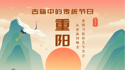 - 10月11日,農(nóng)歷九月初九,將迎來一年一度的傳統(tǒng)節(jié)日——重陽節(jié)。王來華表示,今年的重陽節(jié)趕在了寒露節(jié)氣內(nèi)?!熬啪胖仃枴痹⒁饧?,自古以來,民間便有重陽秋游、賞菊、登高、祭祖等習(xí)俗。后來,重陽節(jié)又添加了敬老、尊老的美意,大家紛紛把重陽節(jié)看作尊老節(jié),登高賞秋,敬老感恩。