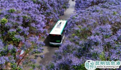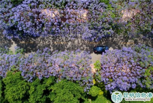 This is the earliest road to plant jacarandas in Kunming. In 1984, the Kunming Botany Institute firstly introduced this tree from Algeria, as well as delonix regia. Both of them are tall and beautiful, and are spectacular in flowering period. Jacaranda usually blooms from April and June, and last for one month.
