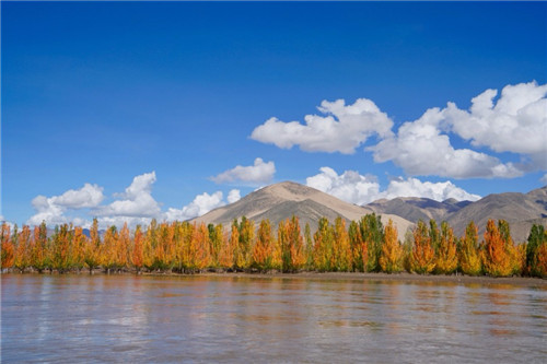 Photo taken on Sept 7, 2018 shows the autumn scenery along the Yarlung Zangbo River in Southwest China's Tibet autonomous region.[Photo/Xinhua]