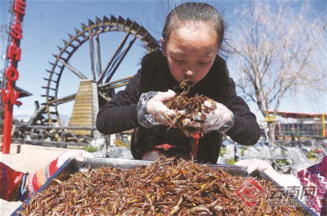 [InKunming--Yunnan] There are eighteen wired things in Yunnan. For example, “Three mosquitoes can be a dish. Grasshopper is delicious to go with wine.” As Yunnan is surrounded by mountains, many places including Lijiang maintain the custom of eating insects. Edible fried worms become a delicious dish for Yunnanese.
