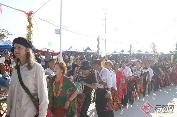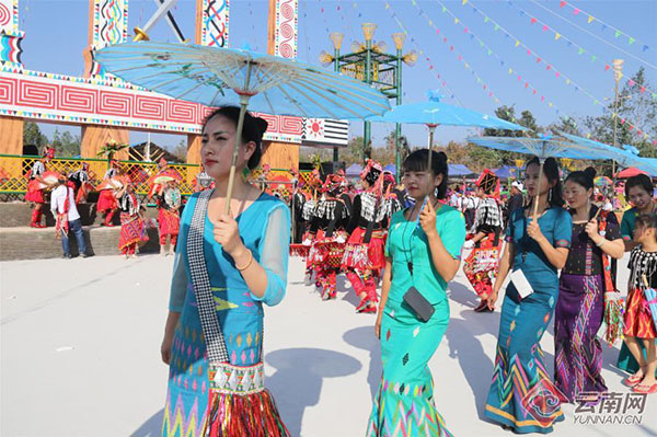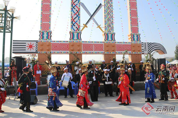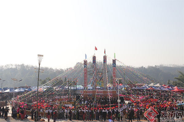[InKunming--Yunnan] This year’s first Munao Zongge Festival (目瑙縱歌節(jié)) kicked off at Leinong village, Huyu Township, Ruili city, Dehong Autonomous Prefecture, Yunnan Province on January 26. It has been celebrated for 3 days. Tens of thousands of people sang and danced together.