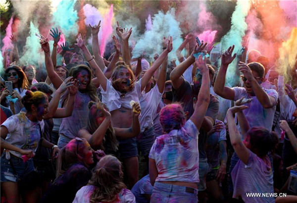 Participants celebrate the Color Festival in Yangon, Myanmar, March 31, 2019. (Xinhua/U Aung)