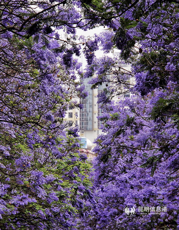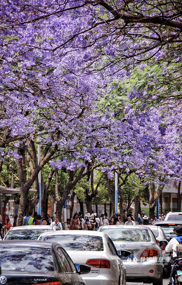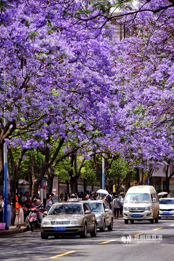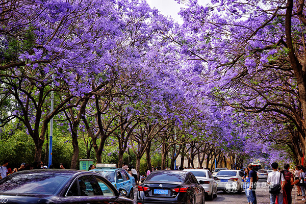 Jiaochangzhong Road (Jiaochang Middle Road) is the earliest road to plant jacarandas in Kunming. Not only here, tourists also can appreciate this purple romance at Cuihu Park, Beijing Road, Qianwei West Road, Huanhu Road and so on.