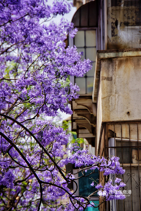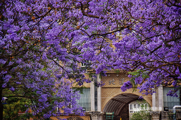 Jacaranda trees with bright color were introduced from Algeria in 1984 and has been here for 34 years. Each tree’s diameter is nearly 20 centimeters, forming a famous view around China.
