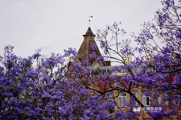 [InKunming--Kunming] These jacaranda trees on Jiaochangzhong Road (Jiaochang Middle Road) enter blooming peak these days and go popular online, attracting masses of tourists. As the most beautiful scenery in May, there are hundreds of jacaranda trees standing on both sides in this two-kilometer street.