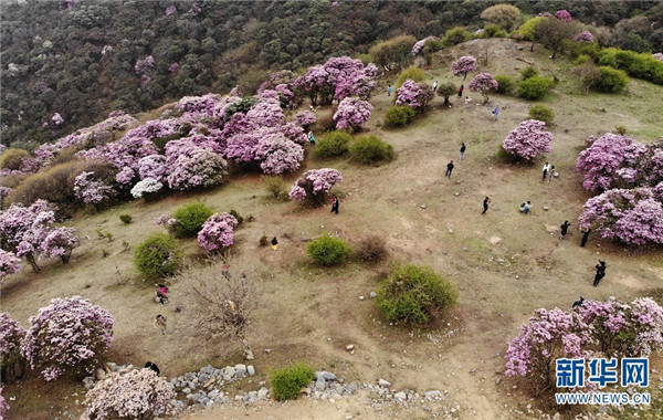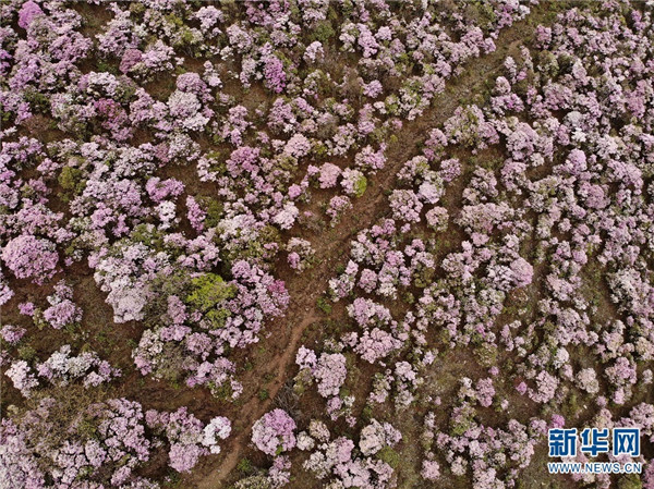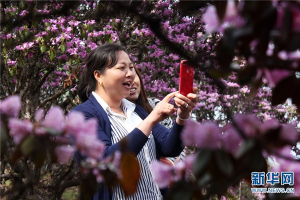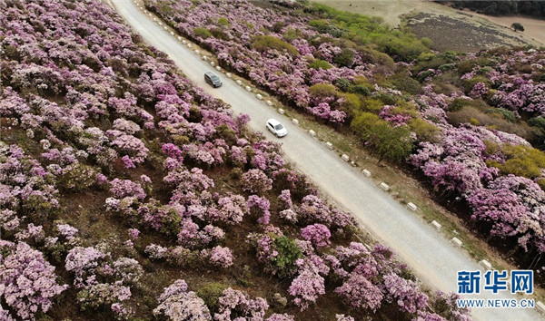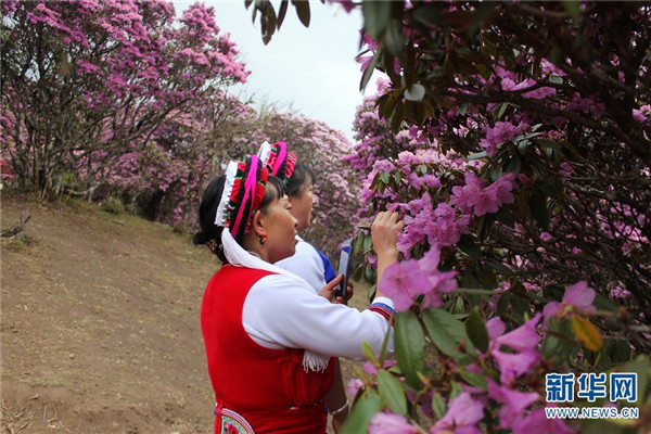 [InKunming--Yunnan] In this early summer, the blooming azalea has attracted a large number of tourists to come to Maer Mountain of Dali, Yunnan. Over ten species of azalea with various colors, including bright red, purple and pink, can be appreciated from one side of the mountain to the other. The flowering season could last from March to June due to the great difference in elevation from the foot of the mountain to the top. (Xinhua/Wang Yu)
