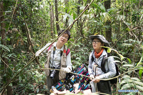 Chinese researchers collect plant samples in the Tamanthi Wildlife Sanctuary in north Myanmar, May 25, 2019. A China-Myanmar joint field expedition, made up with researchers from the Southeast Asia Biodiversity Research Institute of the Chinese Academy of Sciences (CAS-SEABRI) and the Natural Resources and Environmental Conservation of Myanmar, is doing researches on the biodiversity of the Tamanthi Wildlife Sanctuary in northern Myanmar. The expedition, the eighth of its kind since 2014, began on May 14 and will last til June 15. (Xinhua/Jin Liwang)