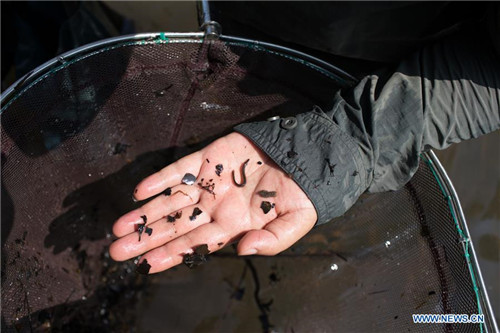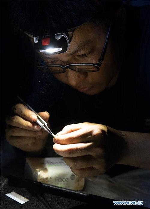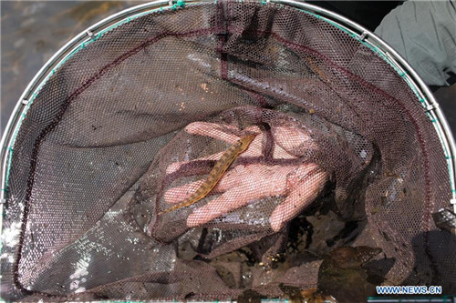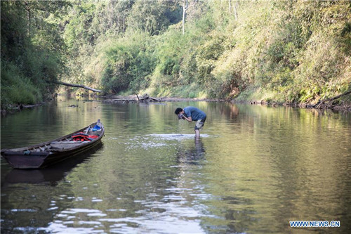 A Chinese researcher shows fish samples in the Tamanthi Wildlife Sanctuary in north Myanmar, May 27, 2019. A China-Myanmar joint field expedition, made up with researchers from the Southeast Asia Biodiversity Research Institute of the Chinese Academy of Sciences (CAS-SEABRI) and the Natural Resources and Environmental Conservation of Myanmar, is doing researches on the biodiversity of the Tamanthi Wildlife Sanctuary in northern Myanmar. The expedition, the eighth of its kind since 2014, began on May 14 and will last till June 15. (Xinhua/Jin Liwang)