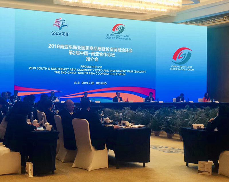 The launch event for the 2019 South and Southeast Asia Commodity Expo and Investment Fair (SSACEIF) and the second China-South Asia Cooperation Forum was held in Beijing. [Photo provided to chinadaily.com.cn]