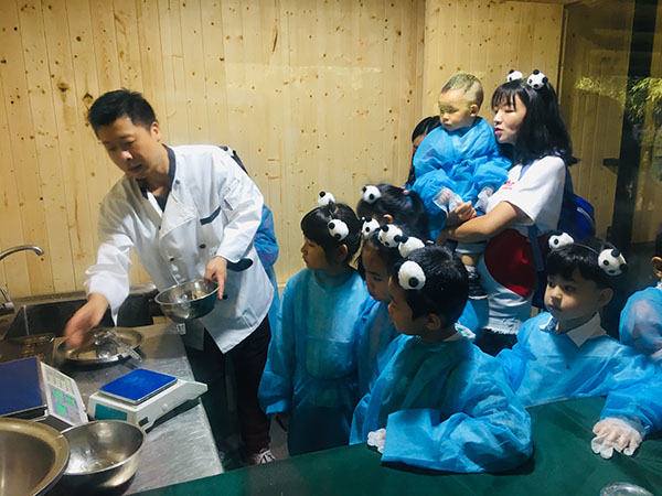 In addition to bamboos and bamboo shots, apples and steamed corn breads are also added into panda’s daily diet, according to the staff. More ingredients can offer different flavors and balanced nutrition. The special steamed corn breads contain corn flour, calcium powder and peanut oil to ensure pandas get enough energy.