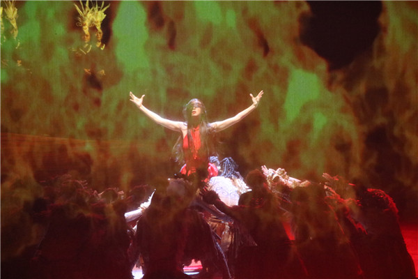 Ethnic people dressed in beautiful ethnic clothes. They performed wonderful artistic shows at Yizhou Grand Theatre in the night of July 25 in Chuxiong prefecture, in a bid to celebrate the Torch Festival.