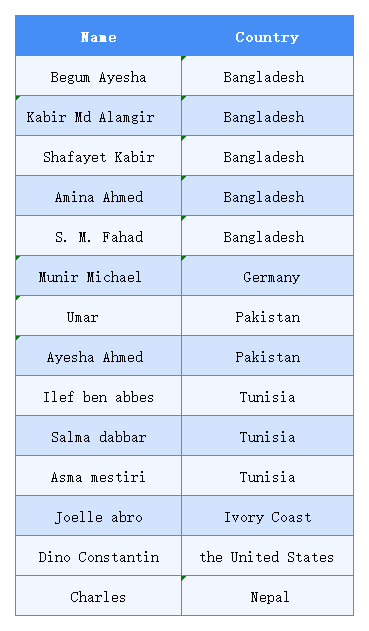 The 14 foreign friends who will join the China’s Qixi Festival event organized by InKunming are respectively from the United States, Germany, Bangladesh, Pakistan, Tunisia, Nepal and Ivory Coast. Their names are shown below: