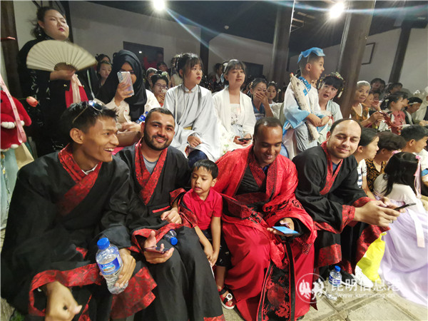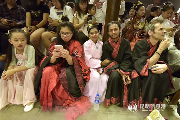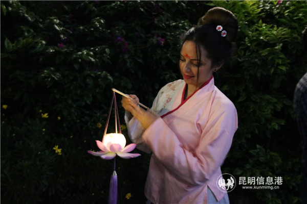 This event was sponsored by Kunming Information Hub, and co-organized by Yunnan Han Chinese Clothing Association, Nanqiang Street No. 88 Theater, Kunming Federation of Literary and Art Circles and Kunming Institute of Literature and Art. With the aim of presenting Chinese culture and customs to foreigners, the event tried to remind people that the Qixi Festival is not only a Chinese Valentine’s Day, but also a festival for girls to ask for light hands.