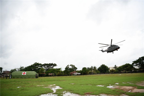 The "Peace Train-2019" China-Laos humanitarian and medical joint rescue exercise enters the phase of integrated training on Aug. 17, 2019. (Peace Train medical team/Handout via Xinhua)