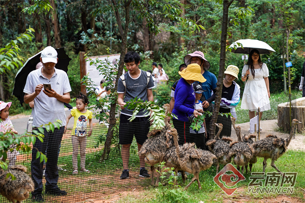 20 newly-born ostrich chicks met visitors at the Yunnan Safari Park in Kunming, capital city of Yunnan province, on June 18. They grew fast and they were healthy. When they grow up, they will go to free-ranging area.