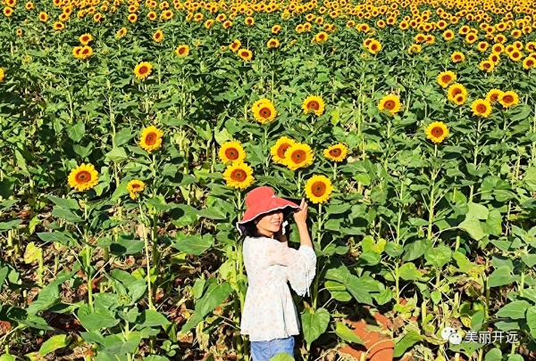 Online pictures showed the stunning midsummer flower and rice fields in Kaiyuan City, south Yunnan’s Honghe Hani and Yi Autonomous Prefecture. The appealing sights have invited in groups of visitors.