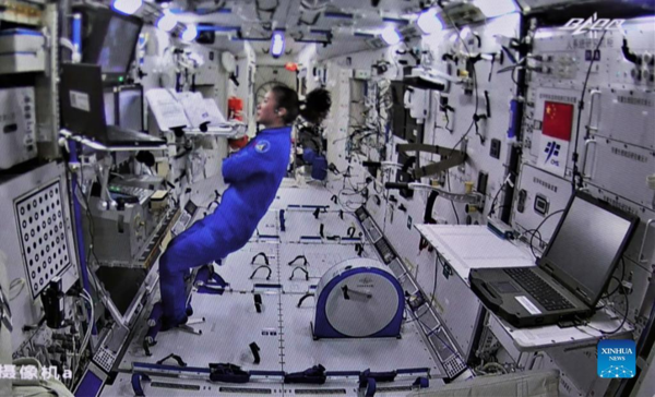 The CMSA said Ye opened the hatch of Tianhe's node cabin at 6:44 p.m. (Beijing Time). Ye and Zhai, donning China-developed Feitian spacesuits, got out of the core module from its node cabin at 6:50 p.m. and 7:37 p.m. respectively.