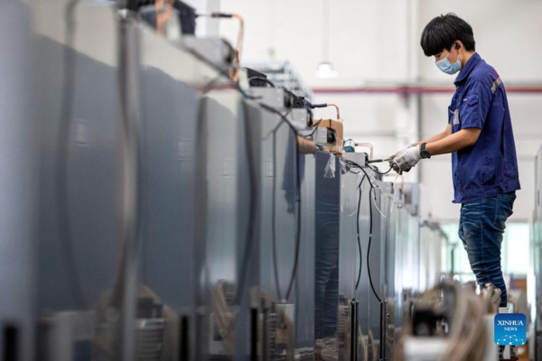 A worker checks cables at the Thai-Chinese Rayong Industrial Zone in Rayong province, Thailand, on Dec. 29, 2021. The Thai-Chinese Rayong Industrial Zone, which is located at the east coast of Thailand, has attracted more than 170 enterprises. (Xinhua/Wang Teng)