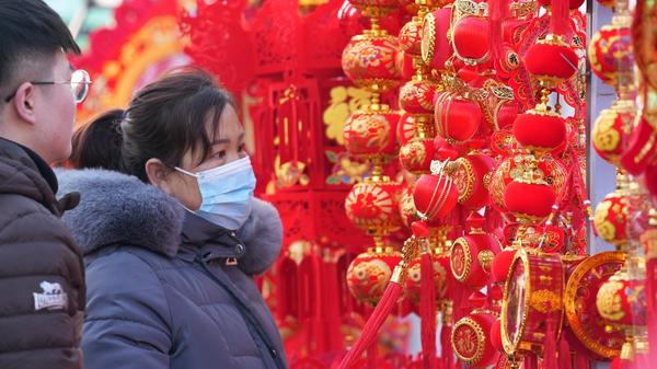 Citizens purchase red lanterns at a festive fair in Yinchuan, northwest China's Ningxia Hui Autonomous Region, Jan. 29, 2022. The Spring Festival falls on Feb. 1 this year. (Photo by Liu Yufei/Xinhua)