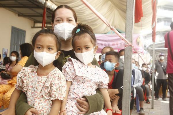A lot of kids, assisted by their parents or legal guardians, are seen waiting for their first dose at vaccination sites in capital Phnom Penh, as the inoculation drive targets roughly 700,000 children at this age group across the kingdom.