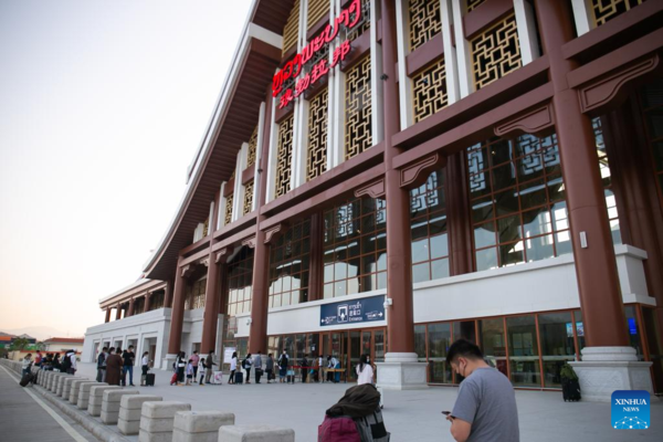 Photo taken on Feb. 25, 2022 shows a view of the Luang Prabang Station in Luang Prabang, Laos. The Laos-China Railway was put into operation in December of 2021, which helped reviving the domestic tourism of Laos. At present, the demand of passengers travelling between Vientiane and the ancient capital of Luang Prabang is growing.
