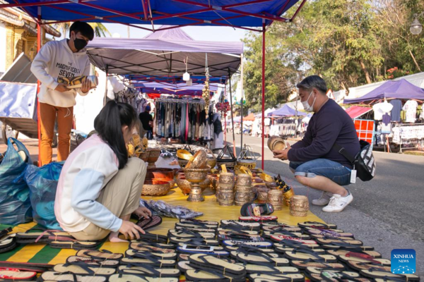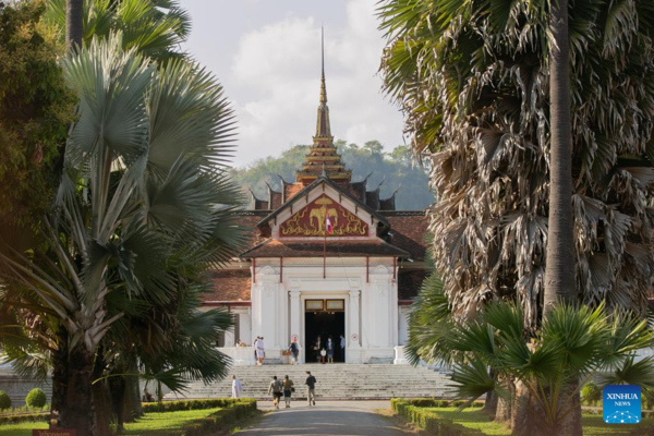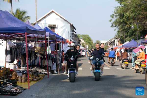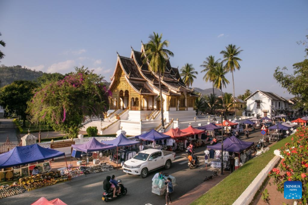 Photo taken on Feb. 25, 2022 shows a view of the ancient town of Luang Prabang, in Laos. The Laos-China Railway was put into operation in December of 2021, which helped reviving the domestic tourism of Laos. At present, the demand of passengers travelling between Vientiane and the ancient capital of Luang Prabang is growing.