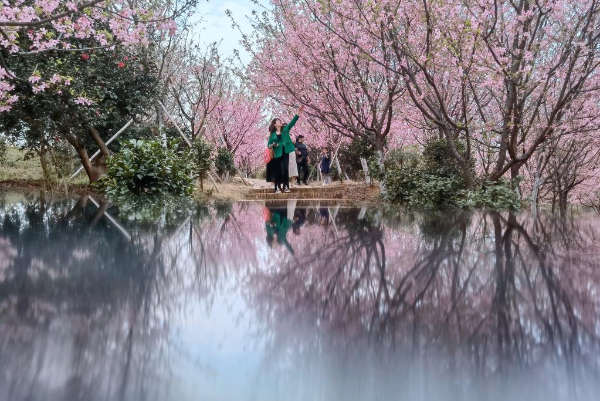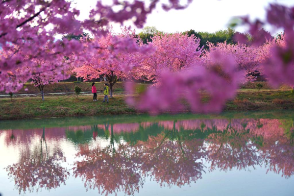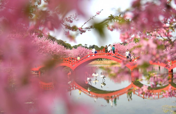 Tourists view cherry blossoms in Luoqiao Township of Changning City, central China's Hunan Province, March 12, 2022. (Xinhua/Zhao Zhongzhi)