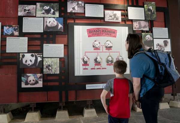 In the outdoor exhibit is the Giant Panda Family Tree Photo Gallery, where there are photos and information about the zoo's giant panda breeding program and how cubs born there are contributing to their species' survival in China.