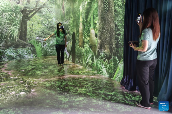 Visitors can enjoy an immersive experience of the Hainan Tropical Rainforest National Park in the exhibition via seeing, hearing, smelling, feeling and even tasting.