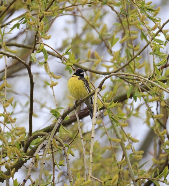 Photo provided by the management and protection bureau of Napahai Lake Nature Reserve shows a yellow-breasted bunting is on a tree in the reserve in southwest China's Yunnan Province, April 18, 2022. (Xinhua)