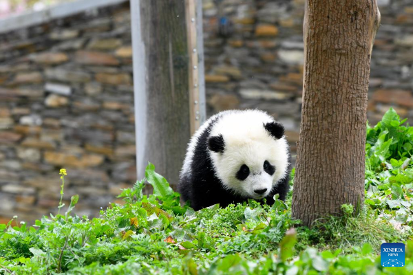 A giant panda is seen at Shenshuping base of China Conservation and Research Center for Giant Pandas in Wolong National Nature Reserve, southwest China's Sichuan Province, April 24, 2022. (Xinhua/Xu Bingjie)