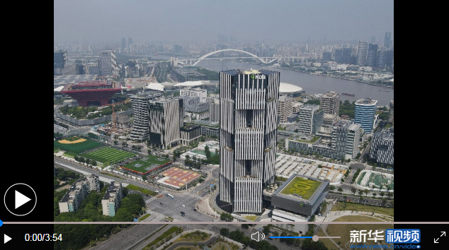 Aerial photo taken on June 17, 2022 shows the headquarters building of the New Development Bank (NDB), also known as the BRICS bank, in east China's Shanghai. (Xinhua/Fang Zhe)