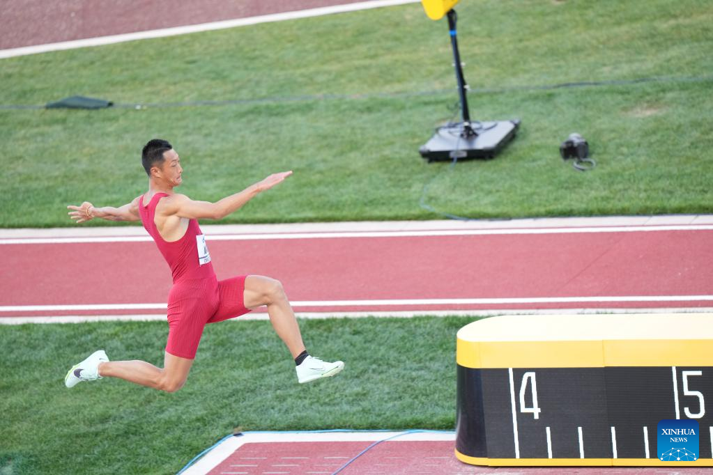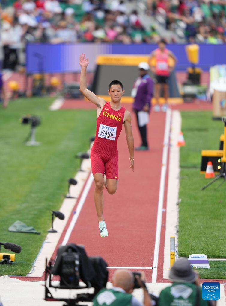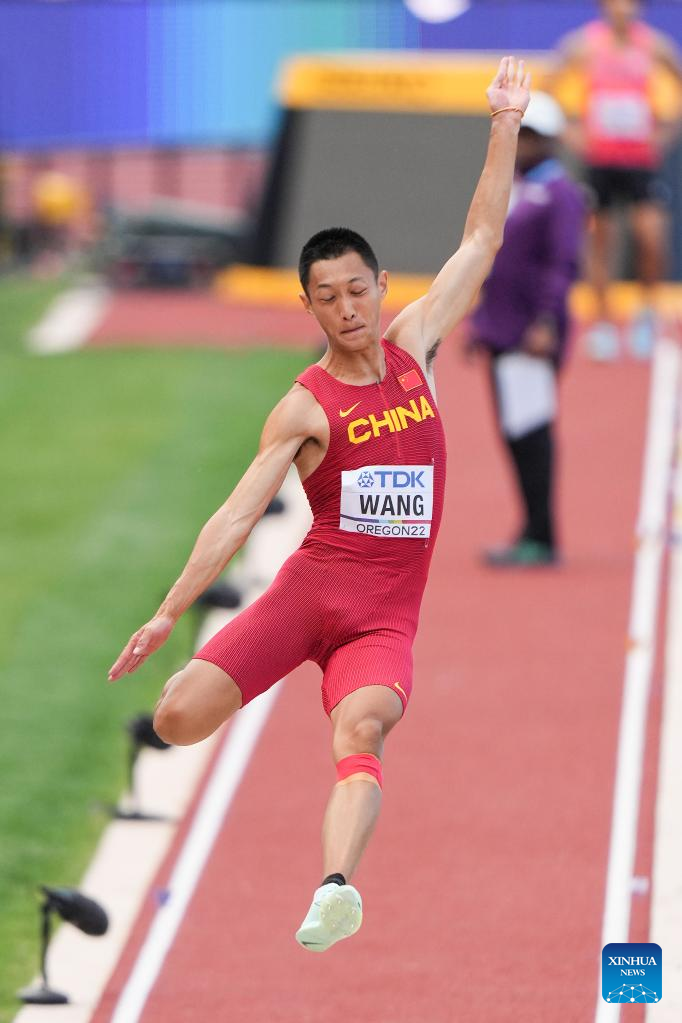 Wang Jianan of China competes during the men's long jump final at the World Athletics Championships Oregon22 in Eugene, Oregon, the United States, July 16, 2022. (Xinhua/Wu Xiaoling)