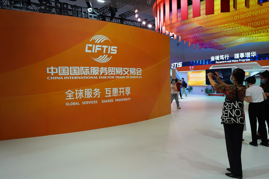 People visit the 2022 China International Fair for Trade in Services (CIFTIS) at the China National Convention Center in Beijing, capital of China, Sept. 5, 2022. (Xinhua/Jin Haoyuan)
