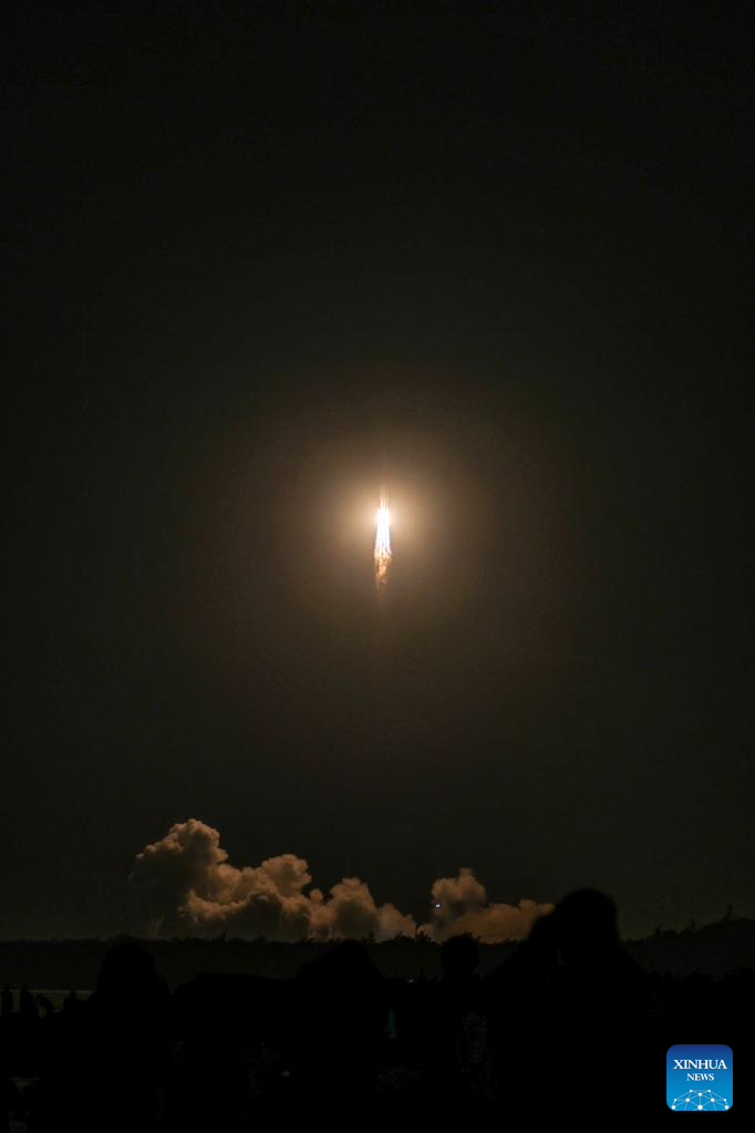 A modified version of the Long March-7 carrier rocket carrying a new satellite, Zhongxing-1E, blasts off from the Wenchang Spacecraft Launch Site in south China's Hainan Province, Sept. 13, 2022.
