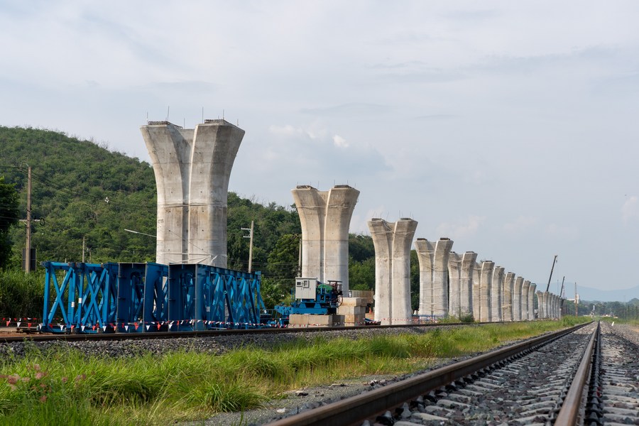 Photo taken on Sept. 7, 2022, shows a construction site of the China-Thailand railway in Nakhon Ratchasima province, Thailand. (Xinhua/Lin Hao)