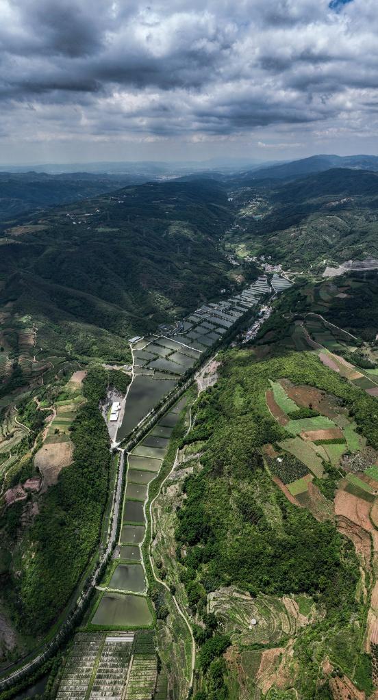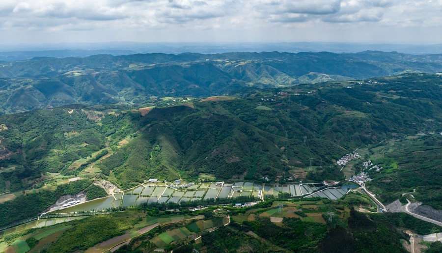 Aerial photo taken on June 19, 2022 shows an aquatic product breeding base in Yiliang County, southwest China's Yunnan Province. (Xinhua/Jiang Wenyao)