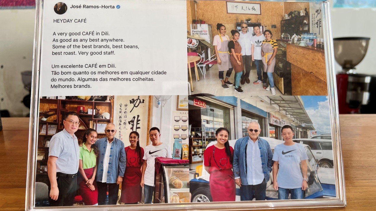 President of Timor-Leste Jose Ramos-Horta gives high evaluation on Heyday AR Coffee in Timor-Leste on social media. (People's Daily/Sun Guangyong)