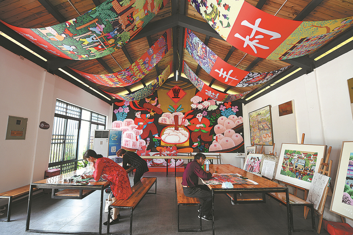 Farmers in Jiaxing paint in their spare time. WANG GANG/CHINA NEWS SERVICE