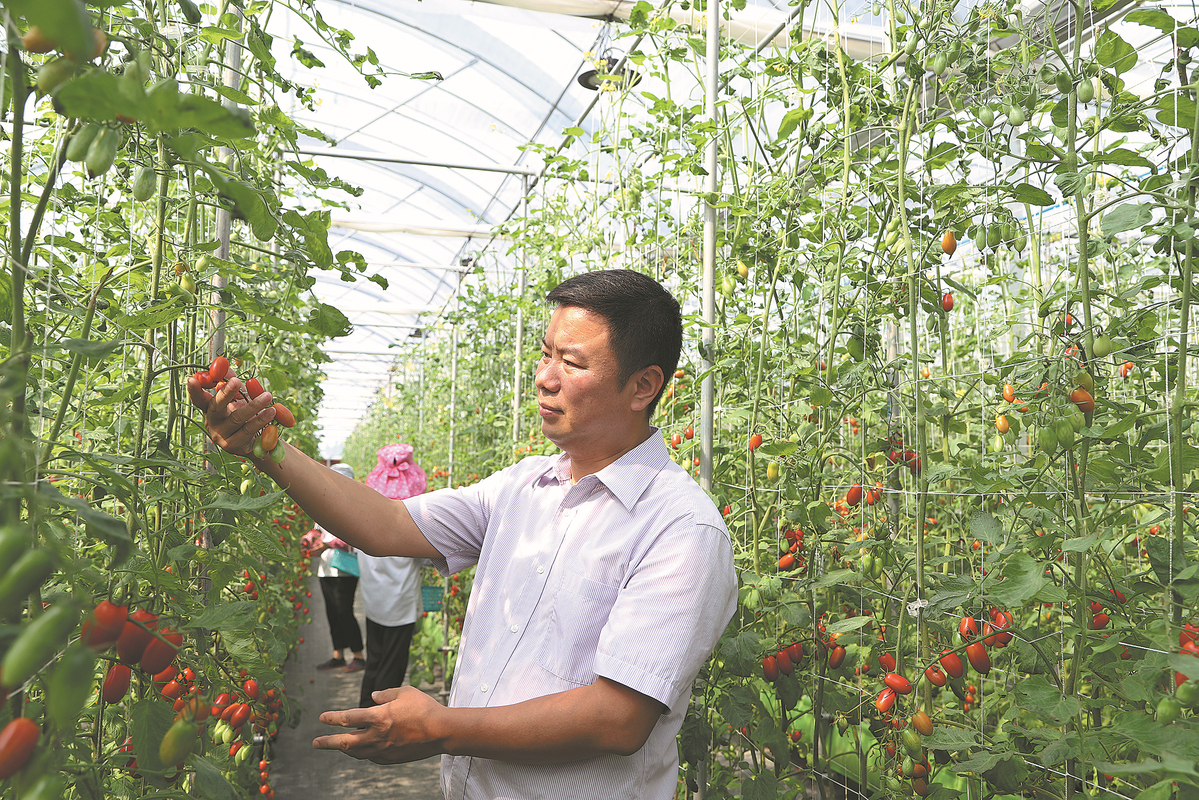 Cherry tomatoes are checked at a farm in Haiyan county, Zhejiang. CHINA DAILY