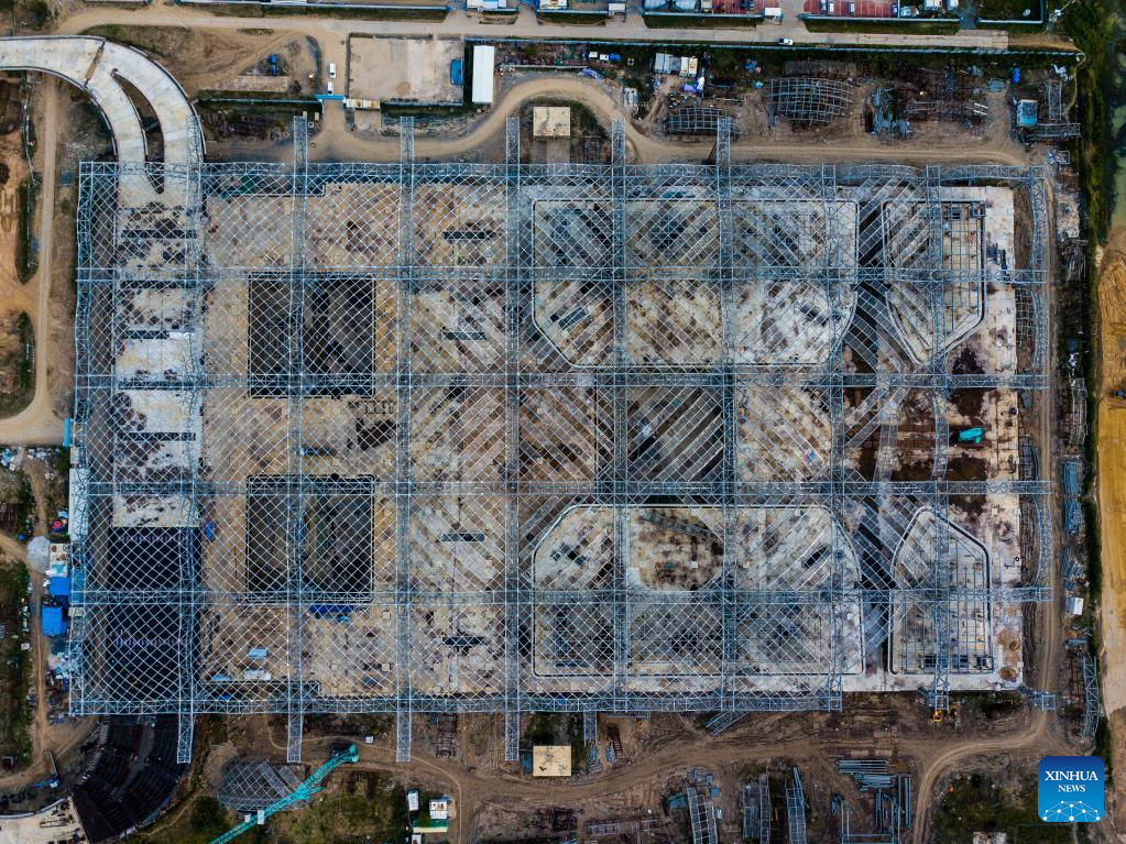 This aerial photo taken on Nov. 8, 2022 shows the construction site of the new Phnom Penh international airport in Kandal province, Cambodia. (Xinhua/Zhu Wei)