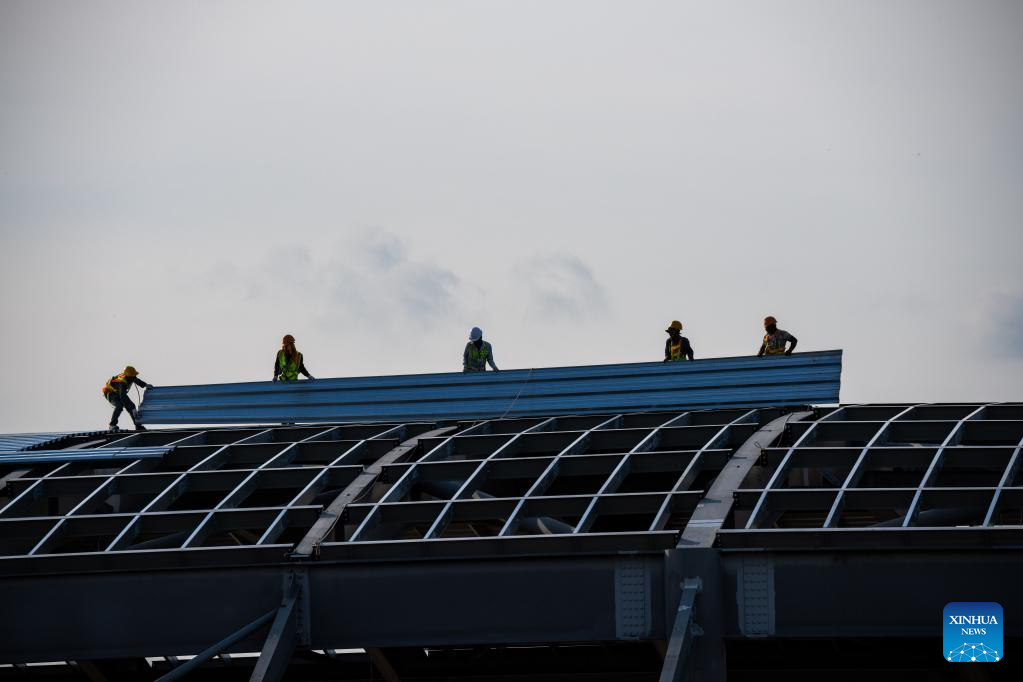 People work at the construction site of the new Phnom Penh international airport in Kandal province, Cambodia, on Nov. 8, 2022. (Xinhua/Zhu Wei)